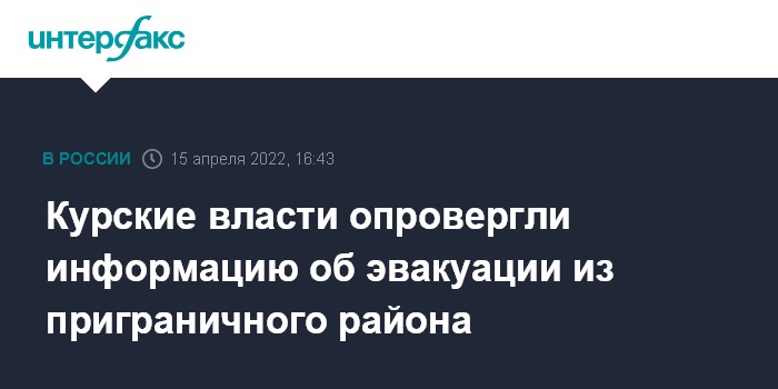 Москва. 15 апреля. INTERFAX.RU - Глава Хомутовского района Курской области Юрий Хрулев назвал слухами информацию об эвакуации населения после обстрела поселка в соседней Брянской области.