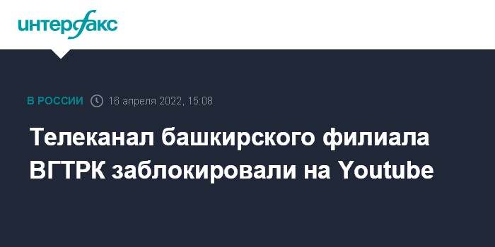 Москва. 16 апреля. INTERFAX.RU - Канал филиала ВГТРК ГТРК "Башкортостан" на видеохостинге Youtube заблокировали без объяснения причин, сообщается на сайте телеканала в субботу.