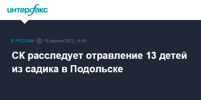 Москва. 18 апреля. INTERFAX.RU - В Подольске возбуждено уголовное дело об отравлении 13 детей в детском садике, сообщили в управлении Следственного комитета по Московской области.