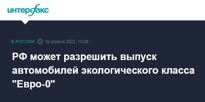 Москва. 19 апреля. INTERFAX.RU - РФ может разрешить выпуск автомобилей экологического класса "Евро-0", пишет газета "Коммерсантъ" со ссылкой на проект постановления правительства о "правилах оценки соответствия колесных транспортных средств, выпускаемых в особый период".