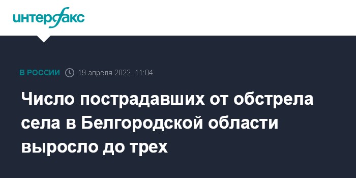 Москва. 19 апреля. INTERFAX.RU - Губернатор Белгородской области Вячеслав Гладков сообщил, что число пострадавших в Головчино с территории Украины во вторник утром выросло до трех, повреждения получили более 30 домов.