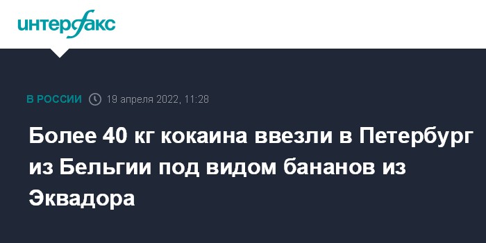 Как уточняется, 40 прямоугольных брикетов с кокаином обнаружили в одном из шести рефрижераторных контейнеров, прибывших на таможенный пост Лесной порт на морском судне из Бельгии в адрес сети продуктовых супермаркетов. В таможенной декларации значились бананы из Эквадора.