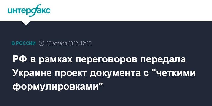 РФ в рамках переговоров передала Украине проект документа с "четкими формулировками"