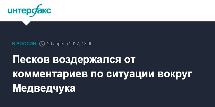 Москва. 20 апреля. INTERFAX.RU - Пресс-секретарь президента РФ Дмитрий Песков заявил, что ему пока нечего сказать по ситуации вокруг возможного обмена задержанного на Украине политика Виктора Медведчука.