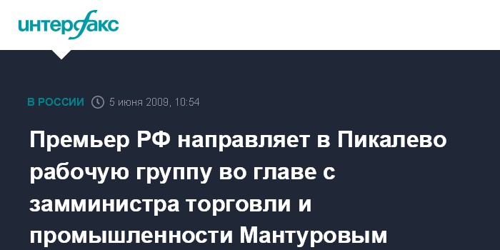 Премьер РФ направляет в Пикалево рабочую группу во главе с замминистра торговли и промышленности Мантуровым