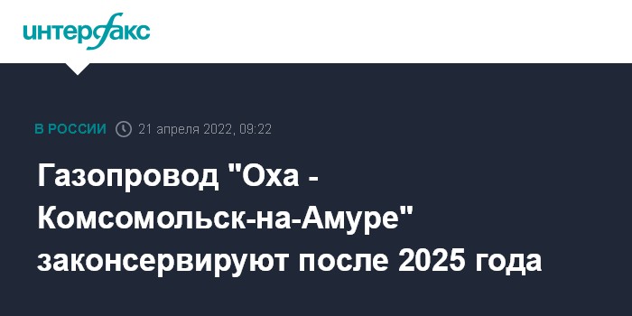 Газопровод "Оха - Комсомольск-на-Амуре" законсервируют после 2025 года