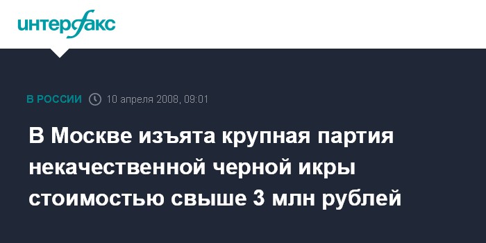 Москва. 10 апреля. INTERFAX.RU - На Дорогомиловском рынке столицы изъято свыше 18 кг черной икры, непригодной для употребления в пищу, сообщили в четверг "Интерфаксу" в пресс-службе Департамента экономической безопасности (ДЭБ) МВД России.