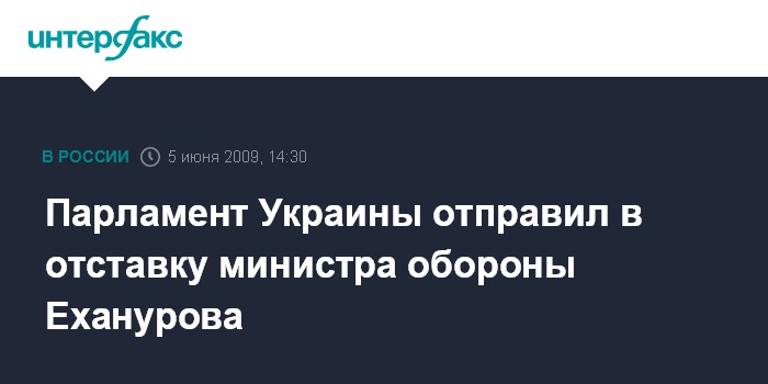 Москва. 5 июня. INTERFAX.RU - Верховная Рада Украины проголосовала за отставку Юрия Еханурова с поста министра обороны.