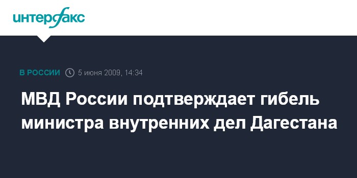 МВД России подтверждает гибель министра внутренних дел Дагестана