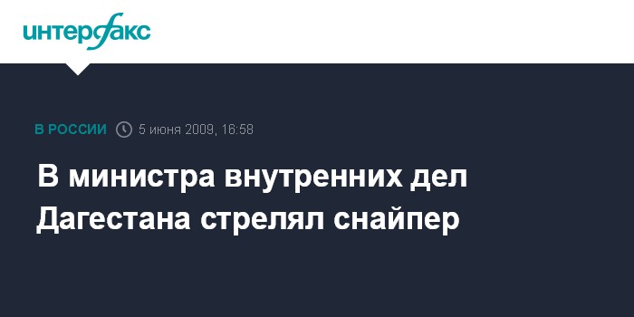 Махачкала. 5 июня. INTERFAX.RU - По предварительным данным, министр внутренних дел Дагестана Адильгерей Магомедтагиров был убит снайпером, которого прикрывал автоматчик, сообщил "Интерфаксу" источник в МВД Дагестана.