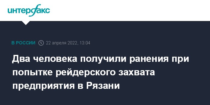 Два человека получили ранения при попытке рейдерского захвата предприятия в Рязани