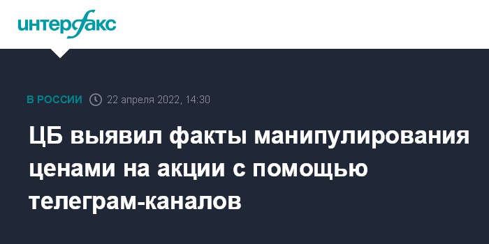 Москва. 22 апреля. INTERFAX.RU - Банк России установил факты манипулирования ценами на акции с помощью телеграм-каналов, говорится в сообщении ЦБ.