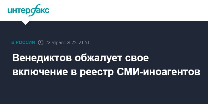 Москва. 22 апреля. INTERFAX.RU - Бывший главный редактор ранее закрытой радиостанции "Эхо Москвы" Алексей Венедиктов сообщил "Интерфаксу", что оспорит в суде решение Минюста о его включении в реестр СМИ-иноагентов.