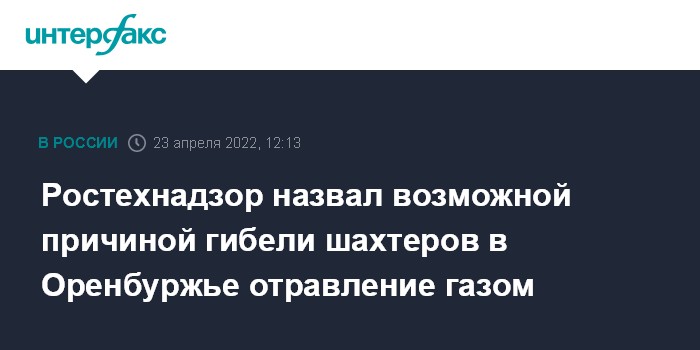 Ростехнадзор назвал возможной причиной гибели шахтеров в Оренбуржье отравление газом