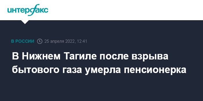 Москва. 25 апреля. INTERFAX.RU - В Нижнем Тагиле после взрыва газа в своей квартире умерла пенсионерка, сообщили в управлении Следственного комитета по Свердловской области. По факту идет доследственная проверка.