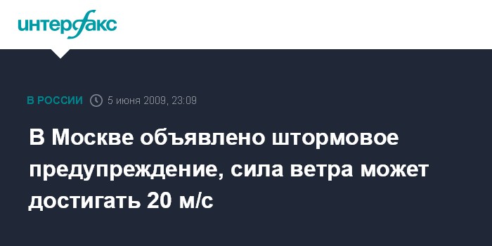 В Москве объявлено штормовое предупреждение, сила ветра может достигать 20 м/с