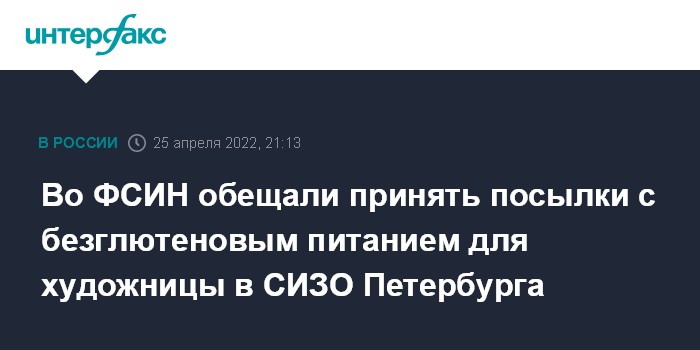 Москва. 25 апреля. INTERFAX.RU - Управление Федеральной службы исполнения наказаний (ФСИН) по Петербургу и Ленинградской области прокомментировало жалобы на условия содержания под стражей художницы Александры Скочиленко, обвиняемой в распространении фейков о российской армии.