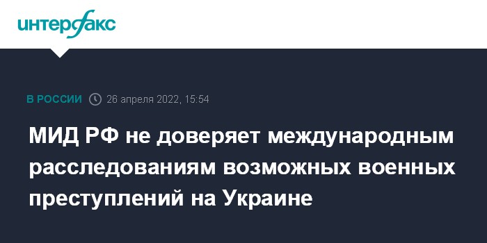 МИД РФ не доверяет международным расследованиям возможных военных преступлений на Украине