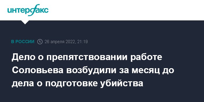 Дело о препятствовании работе Соловьева возбудили за месяц до дела о подготовке убийства