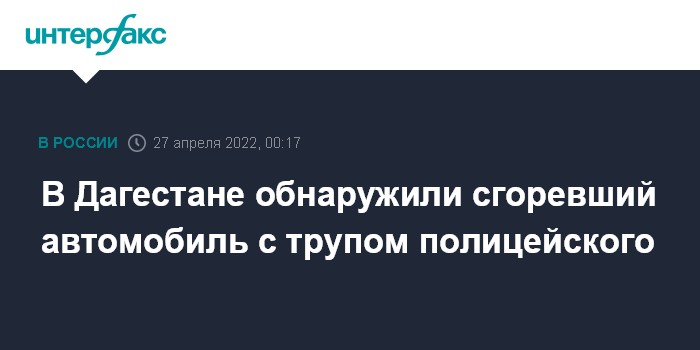 "Сгоревшей автомобиль обнаружили недалеко от аэропорта Махачкалы. По предварительным данным, в нем нашли тело сотрудника полиции", - сказал собеседник агентства.