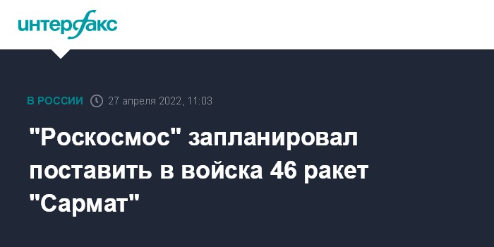 25 апреля Рогозин сообщил, что "Роскосмос" почти готов к серийному производству "Сармата".