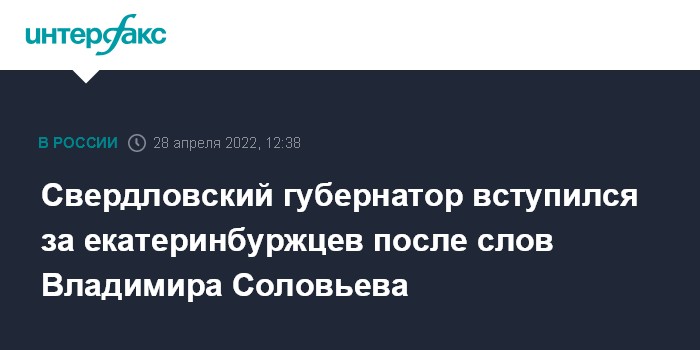 Свердловский губернатор вступился за екатеринбуржцев после слов Владимира Соловьева