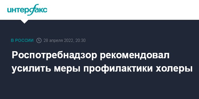 Москва. 28 апреля. INTERFAX.RU - Роспотребнадзор рекомендовал регионам усилить меры профилактики для предотвращения завоза и распространения в РФ холеры, сообщили в пресс-службе ведомства в четверг.