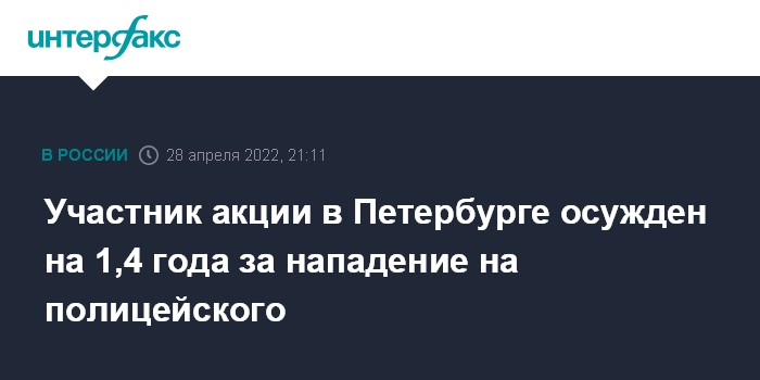 Участник акции в Петербурге осужден на 1,4 года за нападение на полицейского