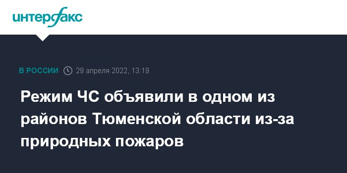 Москва. 29 апреля. INTERFAX.RU - Власти Тюменской области вводят режим ЧС в Абатском районе в связи с природными пожарами, сообщил губернатор Александр Моор в своем телеграм-канале.