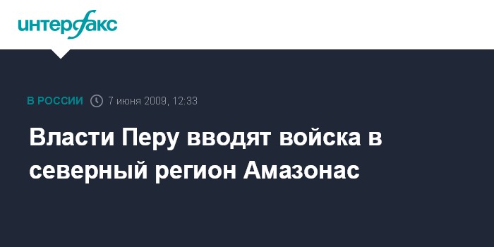 Лондон. 7 июня. INTERFAX.RU - Власти Перу в регионе Амазонас на севере страны ввели комендантский час, а также разместили дополнительные армейские подразделения после начавшихся там в минувшую пятницу массовых беспорядков, сообщает британская телерадиокорпорация Би-би-си.