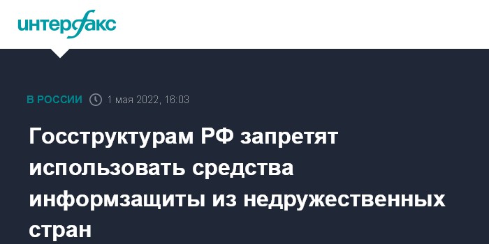 Госструктурам РФ запретят использовать средства информзащиты из недружественных стран