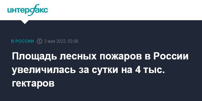 Москва. 2 мая. INTERFAX.RU - Почти 90% контролируемых природных пожаров в России приходится на Курганскую и Амурскую области, а также на Хабаровский край, общая площадь возгораний увеличилась за сутки на 4 тыс. га, следует из сводки федеральной Авиалесоохраны.