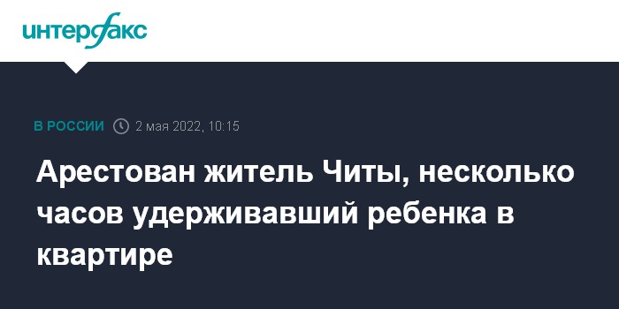 Москва. 2 мая. INTERFAX.RU - Следствие предъявило обвинение по двум статьям жителю Забайкалья, который после конфликта с родственниками, угрожая оружием, несколько часов удерживал в квартире трехлетнего ребенка. В понедельник он арестован с санкции суда.