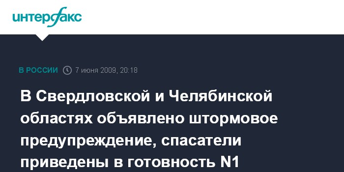 Екатеринбург. 7 июня. ИНТЕРФАКС-УРАЛ - МЧС на период с ночи 7 июня и на 8 июня объявило штормовое предупреждение на территории севера Свердловской области и Челябинской области.