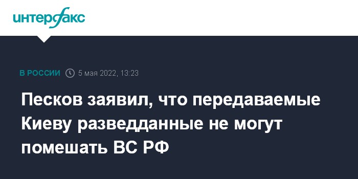 Песков заявил, что передаваемые Киеву разведданные не могут помешать ВС РФ