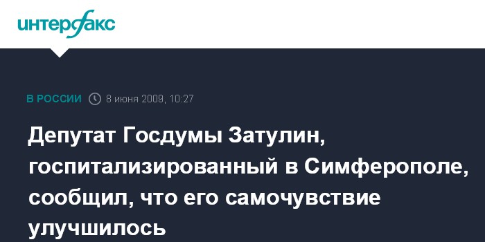 Москва. 8 июня. INTERFAX.RU - Директор Института стран СНГ, первый замглавы комитета Госдумы по делам СНГ и связям с соотечественниками Константин Затулин, госпитализированный в одну из больниц Симферополя после запрета на въезд на Украину, заявляет, что чувствует себя нормально.