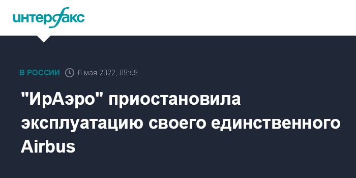 Также, по его словам, "в связи с текущей геополитической ситуацией" приостановлены переговоры о лизинге еще одного Airbus – A320. При этом недавно "ИрАэро" взяла в аренду российский Ан-26-100.