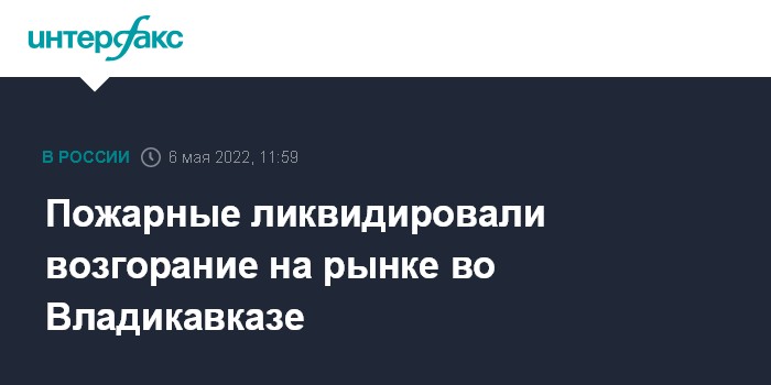 Москва. 6 мая. INTERFAX.RU - Ликвидирован огонь на рынке "Викалина" во Владикавказе, один человек доставлен в больницу, сообщил начальник ГУ МЧС России по Северной Осетии Александр Хоружий.