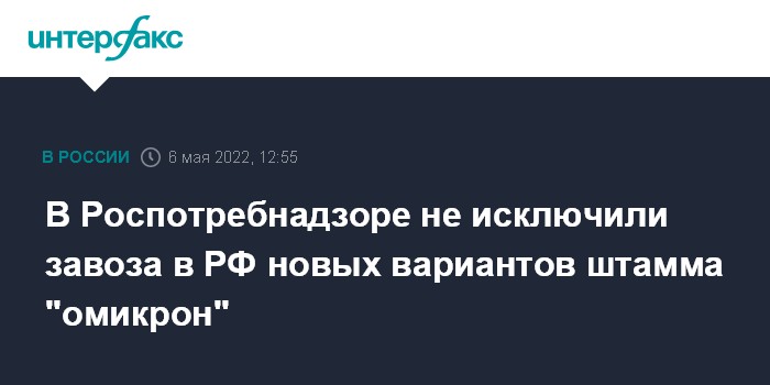 Москва. 6 мая. INTERFAX.RU - В России на сегодняшний день нет случаев заболевания вариантами "омикрон"-штамма коронавируса ВА.4 и ВА.5, обнаруженных в Южной Африке и Европе, однако риск завоза этих штаммов существует. Об этом "Интерфаксу" заявил руководитель научной группы разработки новых методов диагностики на основе технологий секвенирования ЦНИИ Эпидемиологии Роспотребнадзора Камиль Хафизов.