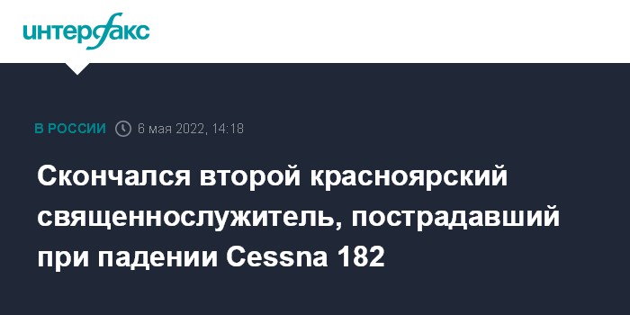 Скончался второй красноярский священнослужитель, пострадавший при падении Cessna 182