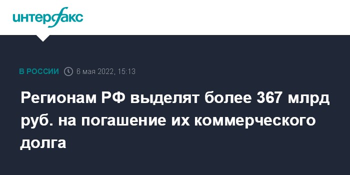 Регионам РФ выделят более 367 млрд руб. на погашение их коммерческого долга