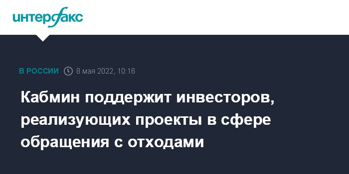 Москва. 8 мая. INTERFAX.RU - Инвестиционные компании, реализующие проекты по обработке и утилизации коммунальных отходов, смогут рассчитывать на льготную процентную ставку по банковским кредитам, соответствующее постановление подписал премьер России Михаил Мишустин.