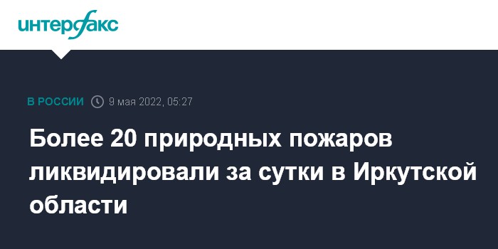Москва. 9 мая. INTERFAX.RU - Пожарные за минувшие сутки ликвидировали 23 возгорания в лесном фонде Иркутской области, сообщает пресс-служба правительства региона в понедельник.