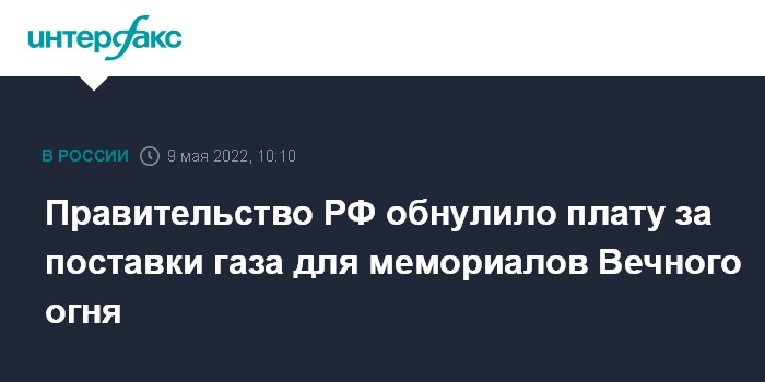 Москва. 9 мая. INTERFAX.RU - Премьер РФ Михаил Мишустин подписал постановление, которое закрепляет обнуление платы за поставки газа, а также услуги по его транспортировке по газораспределительным сетям для Вечного огня и Огня памяти на воинских захоронениях и мемориалах, сообщает сайт правительства РФ.