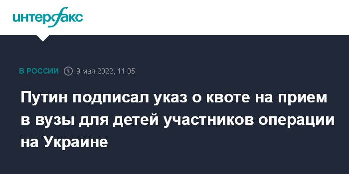 Путин подписал указ о квоте на прием в вузы для детей участников операции на Украине