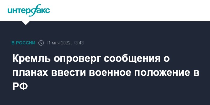 Кремль опроверг сообщения о планах ввести военное положение в РФ