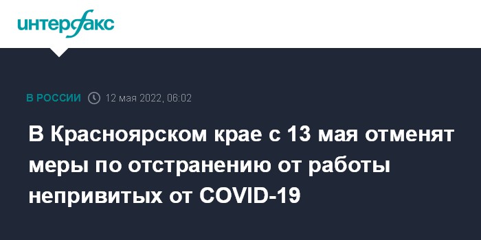 В Красноярском крае с 13 мая отменят меры по отстранению от работы непривитых от COVID-19