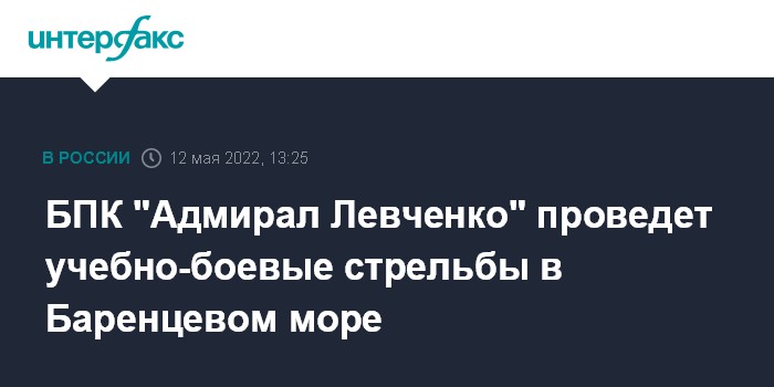 Москва. 12 мая. INTERFAX.RU - Большой противолодочный корабль (БПК) "Адмирал Левченко" в четверг и пятницу проведет в Баренцевом море учение с боевыми стрельбами по береговым и воздушным целям, сообщили в пресс-службе Северного флота.