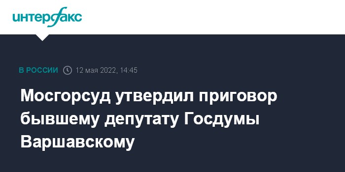 Москва. 12 мая. INTERFAX.RU - Мосгорсуд оставил без изменений приговор бизнесмену и депутату Госдумы IV и V созывов Вадиму Варшавского, которому Замоскворецкий суд в сентябре 2021 года назначил семь лет колонии по делу о мошенничестве. Об этом "Интерфаксу" сообщили в пресс-службе суда.
