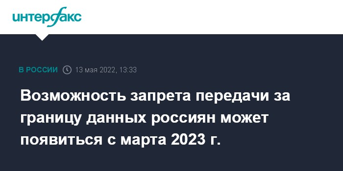 Возможность запрета передачи за границу данных россиян может появиться с марта 2023 г.